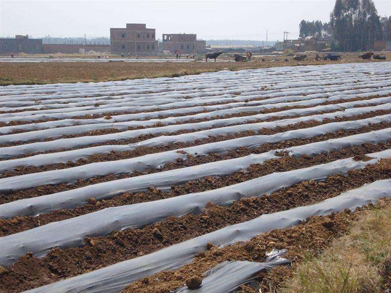 黑色地膜是以聚乙烯为主要原料,添加抗氧剂,紫外线吸收剂,黑色母粒,用塑料吹膜机生产而成的用于农业覆盖的黑色塑料薄膜。